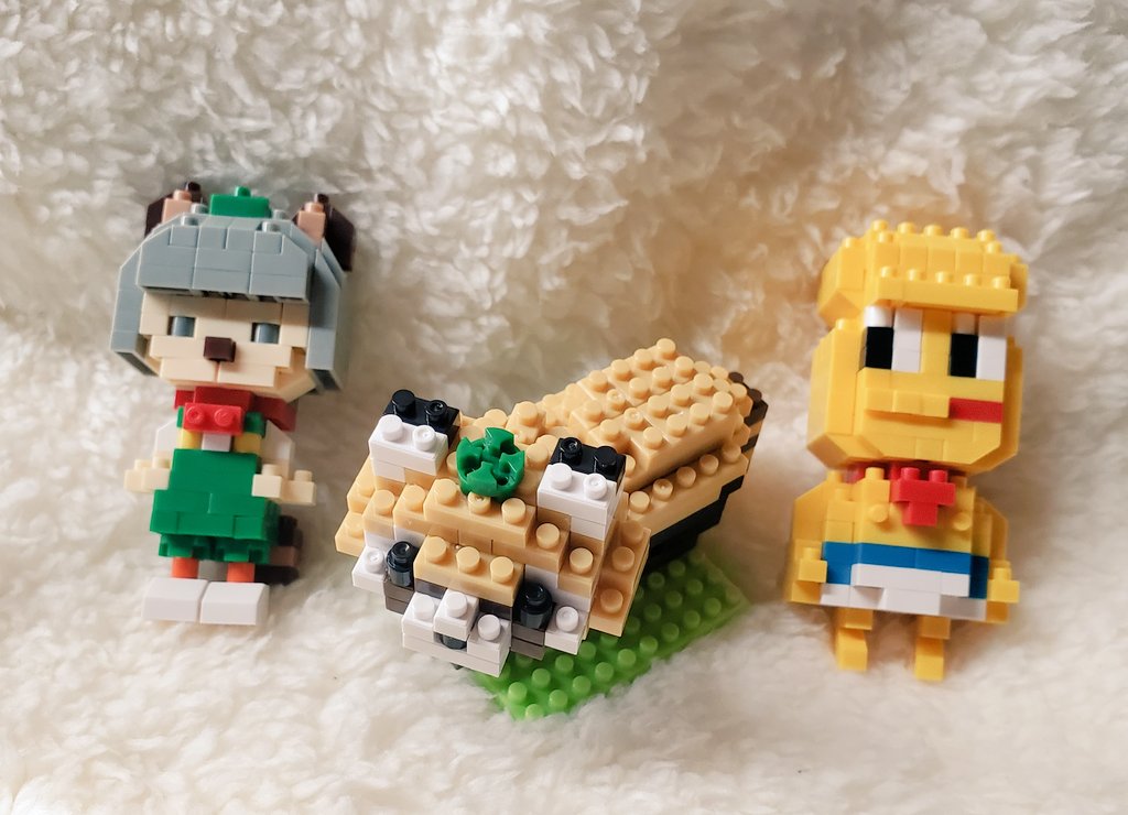 ダイソーで見つけたとき、狸に見えちゃって...ᐢ⓿ᴥ⓿ᐢ 余ってるナノブロックで葉っぱみたいに乗せてみた!(ぽんぽこさんも🍃) \rrレッサーデェス...!(cv:びわ湖くん)/ #ぽこあーと #おしゃれになりたいピーナッツくん