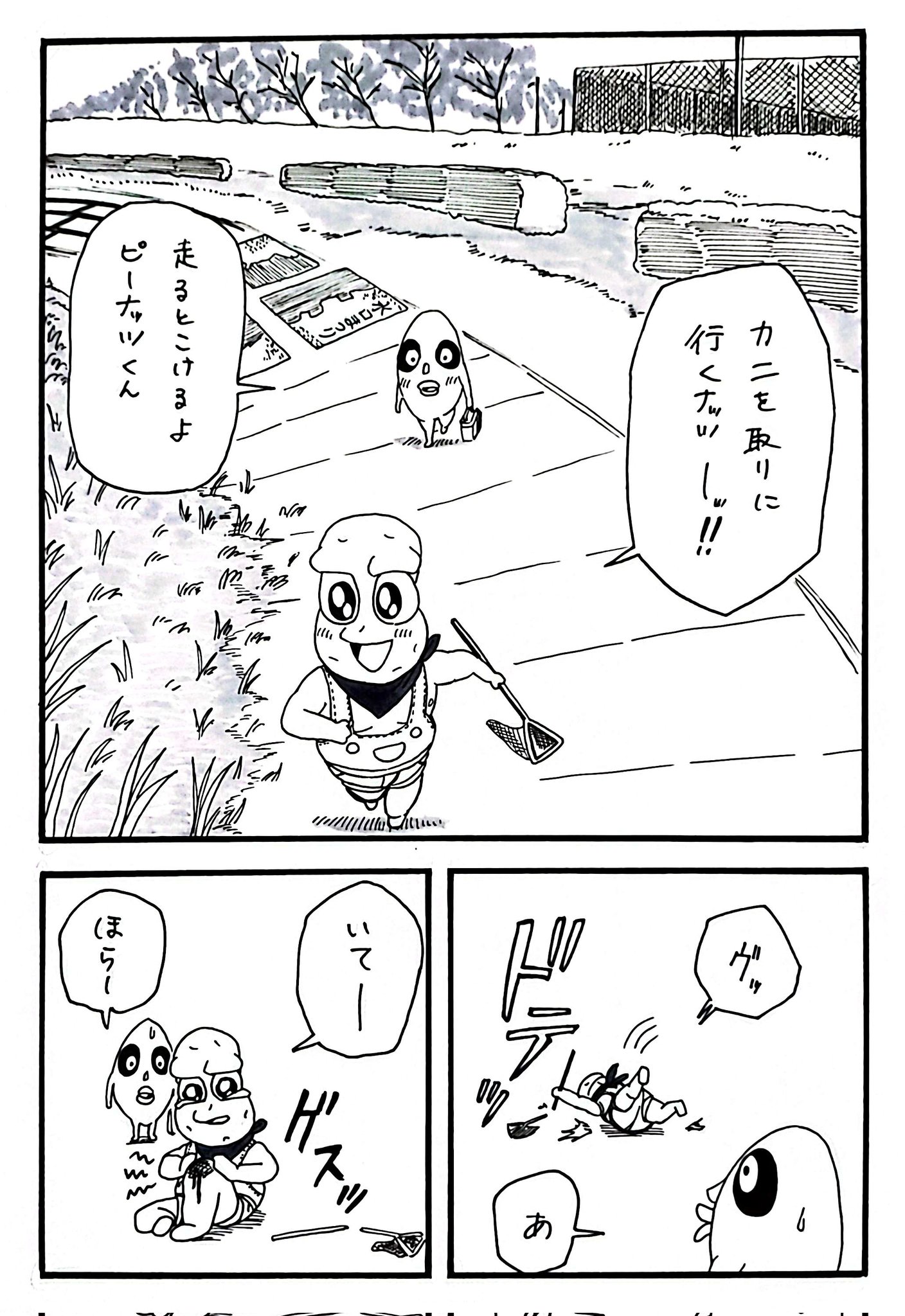 こけてケガをしたピーナッツくん漫画(1/2) #オシャレになりたいピーナッツくん #ぽこあーと #ヌォンタート