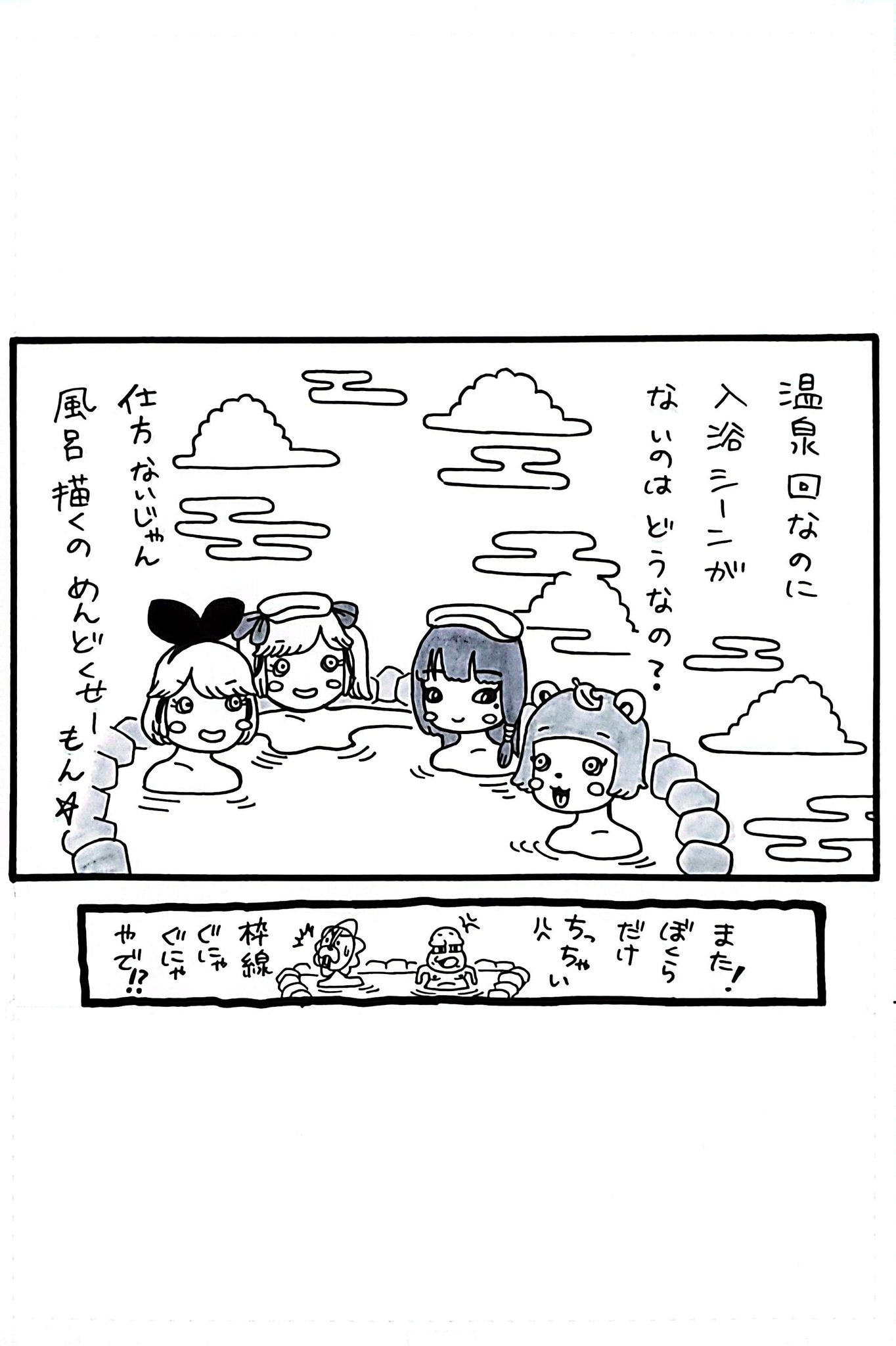 極楽湯に行く親戚コラボ漫画(2/2) #オシャレになりたいピーナッツくん #ぽこあーと #おめシス #葵の絵 #キクノポリタン美術館