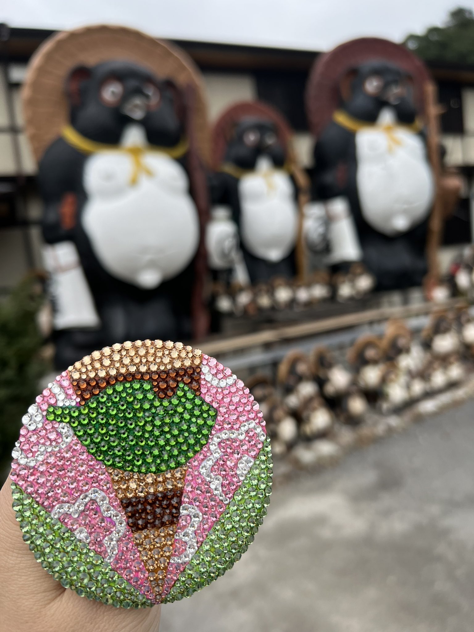 ぽんぽこちゃんの親戚?に 会ってきました! たくさん居て可愛い〜 以前作った VTuberイメージデコ✨ ぽんぽこちゃん缶バッジ 記念撮影📸嬉しい☺️ 来週24時間頑張れ💪😁 #ぽんぽこ #ぽこあーと #ぽんぽこ24 #VTuberイメージデコ #VTuber応援