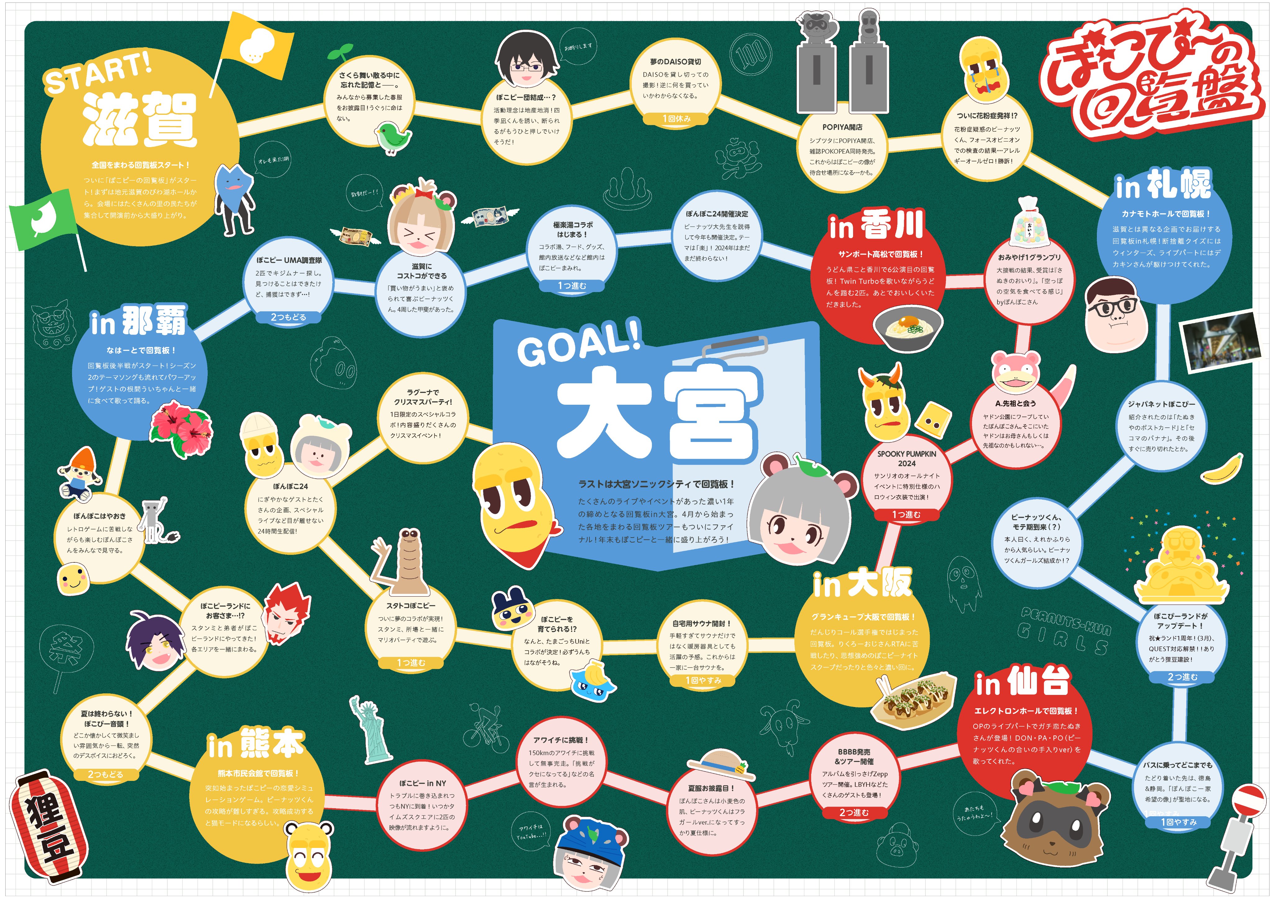 回覧板を中心に、今年の2人の活動をすごろく形式で振り返ることができる「ぽこピーの回覧盤」をつくりました。 #PokopeaAdventCalendar2024 #ぽこあーと