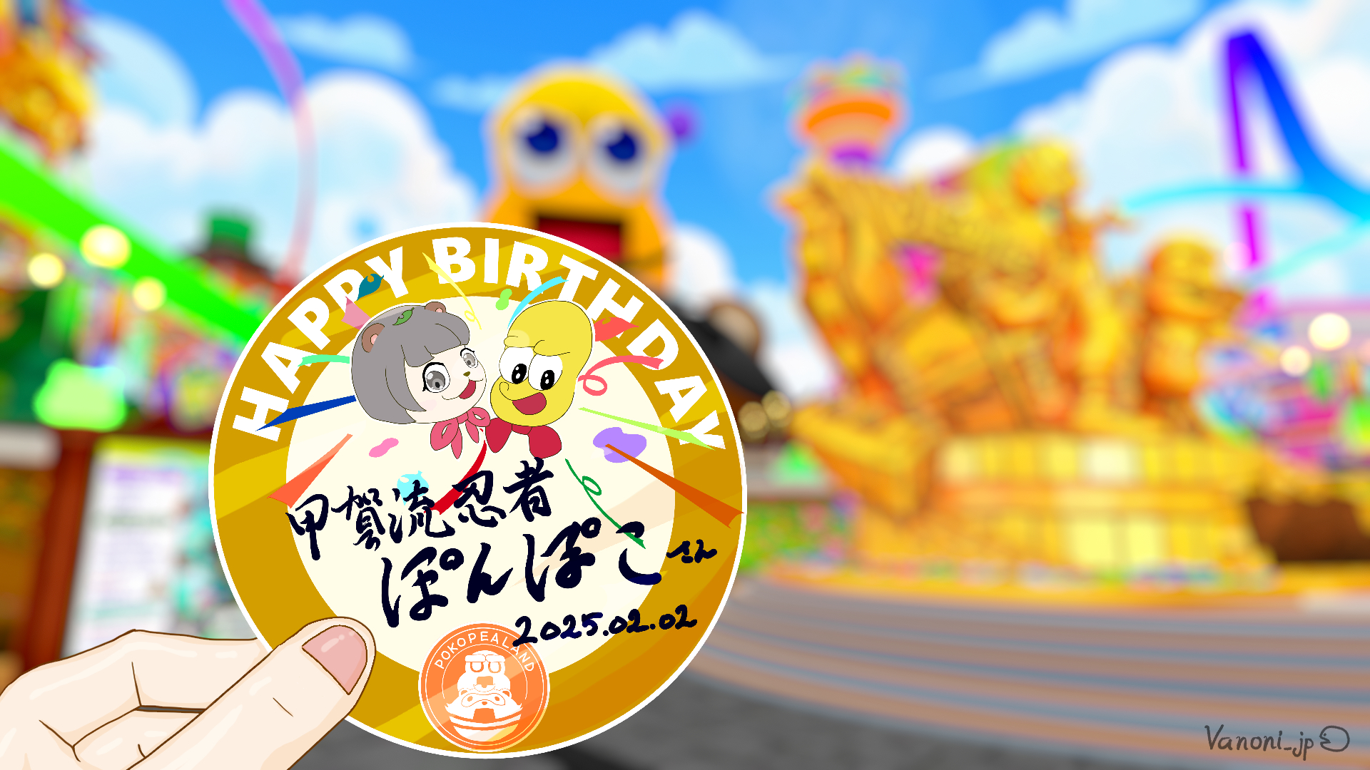 誕生日に遊園地に行くともらえるステッカーイメージ ぽんぽこ誕生日おめでとう!! #ぽこあーと #ぽんぽこ生誕祭2025 #ぽこピーランド