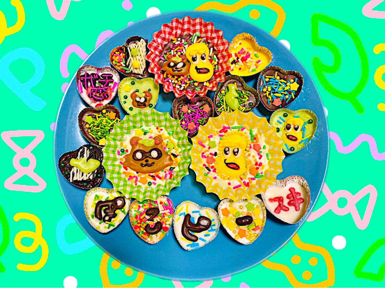 ぽこピー風平成女児チョコ⤴︎⤴︎🍃🥜🌈 🎀⭐️💛ハッピ〜バレンタイン💚⭐️🎀 #ぽこあーと #オシャレになりたいピーナッツくん