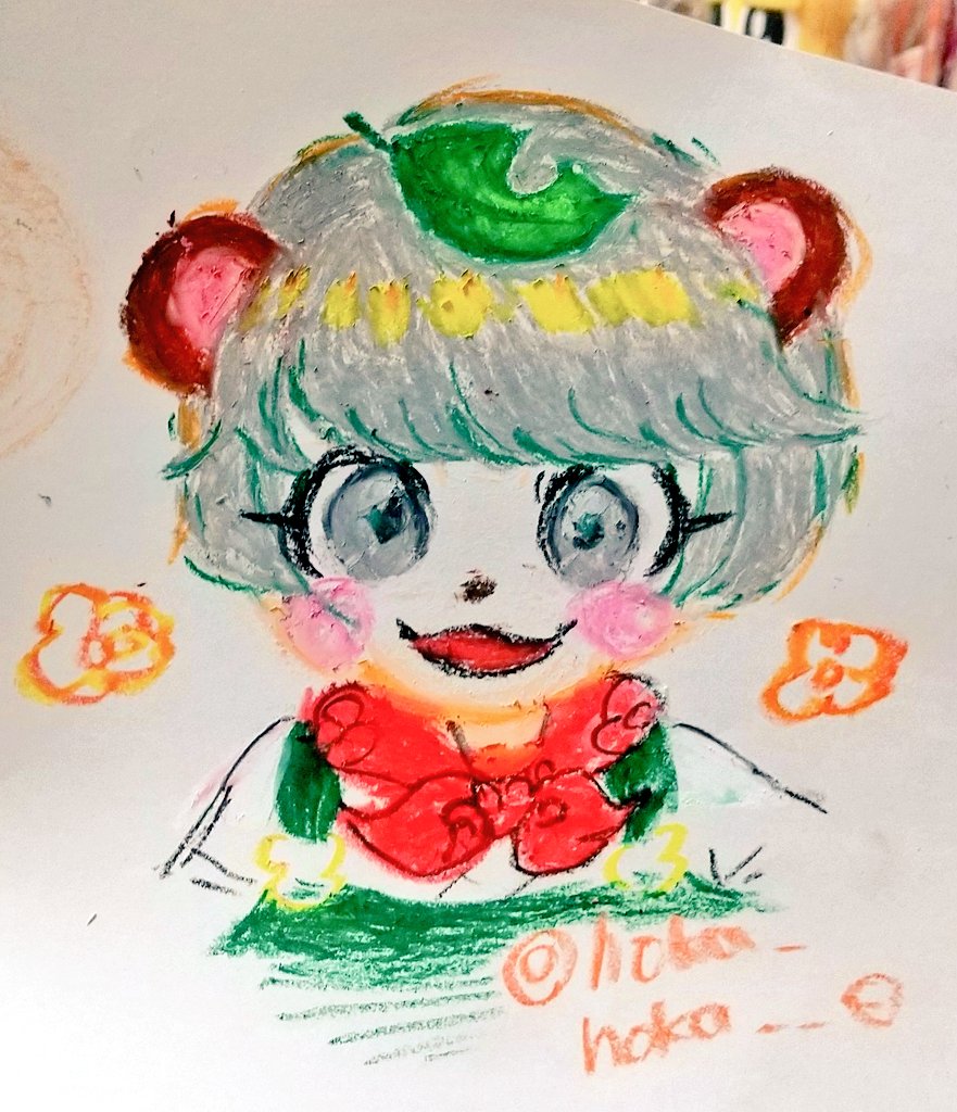 #ぽこあーと クレヨンでぽんぽこちゃん描いたよ~🖍️🌻