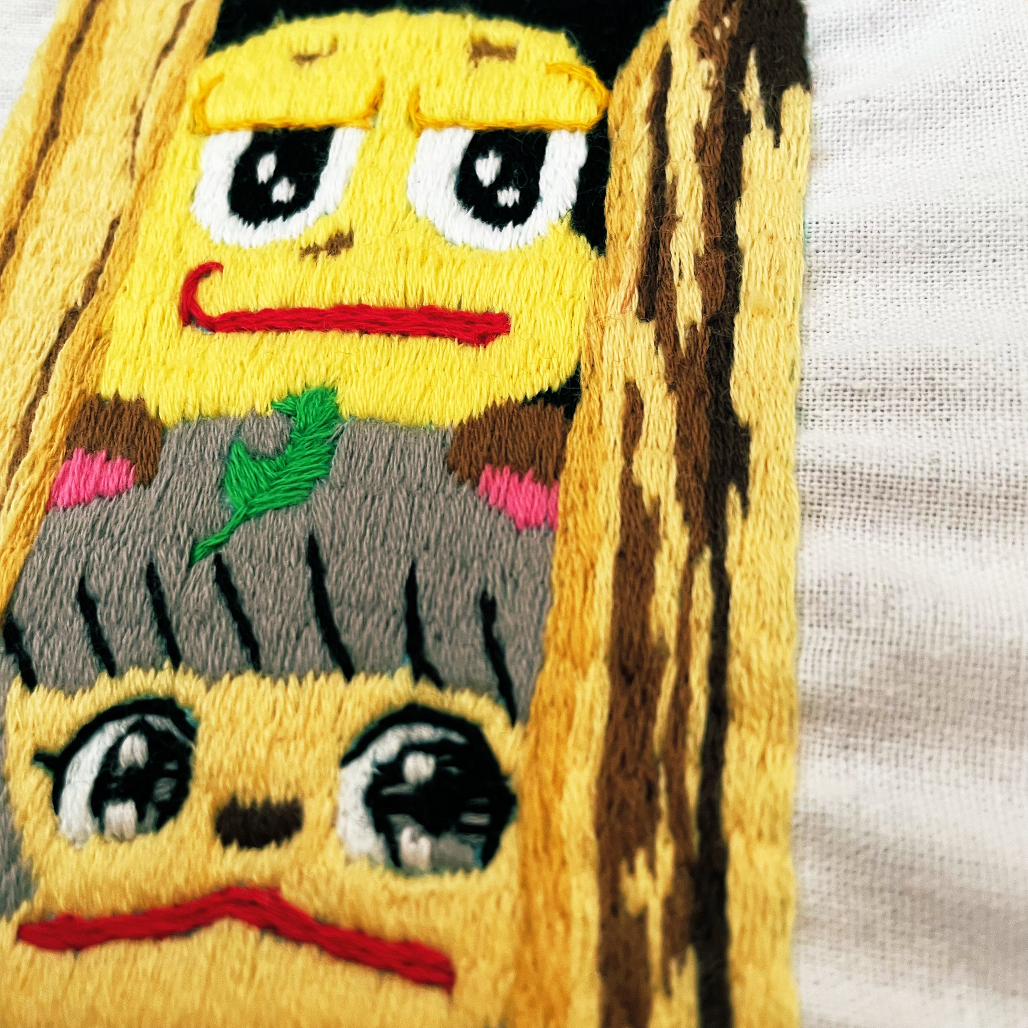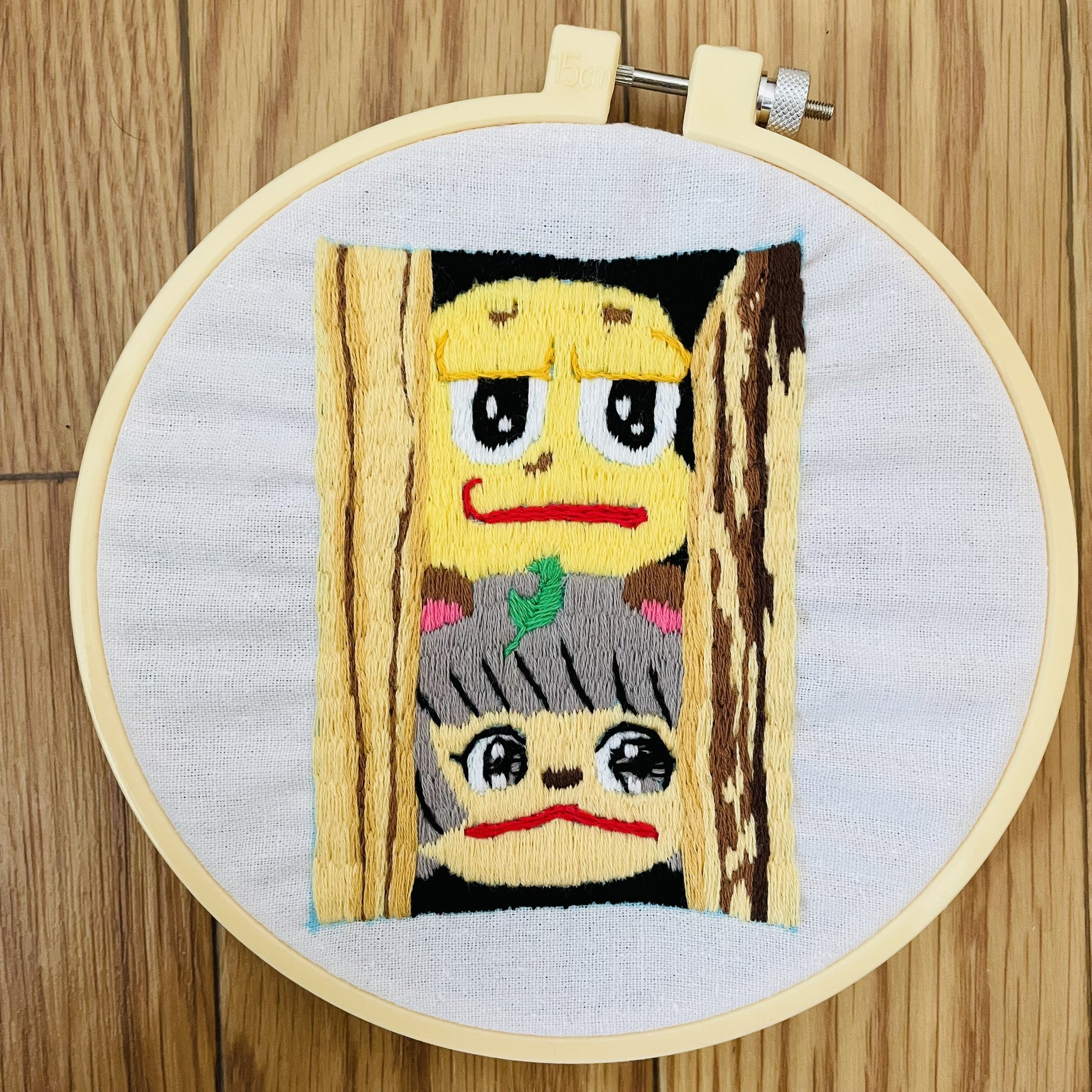 刺繍deぽこピー(第2弾) #ぽこあーと +魔さんのイラストを元に刺繍しました🪡 実は前回のも今回のも材料は全部DAISO! 100均スゲー!