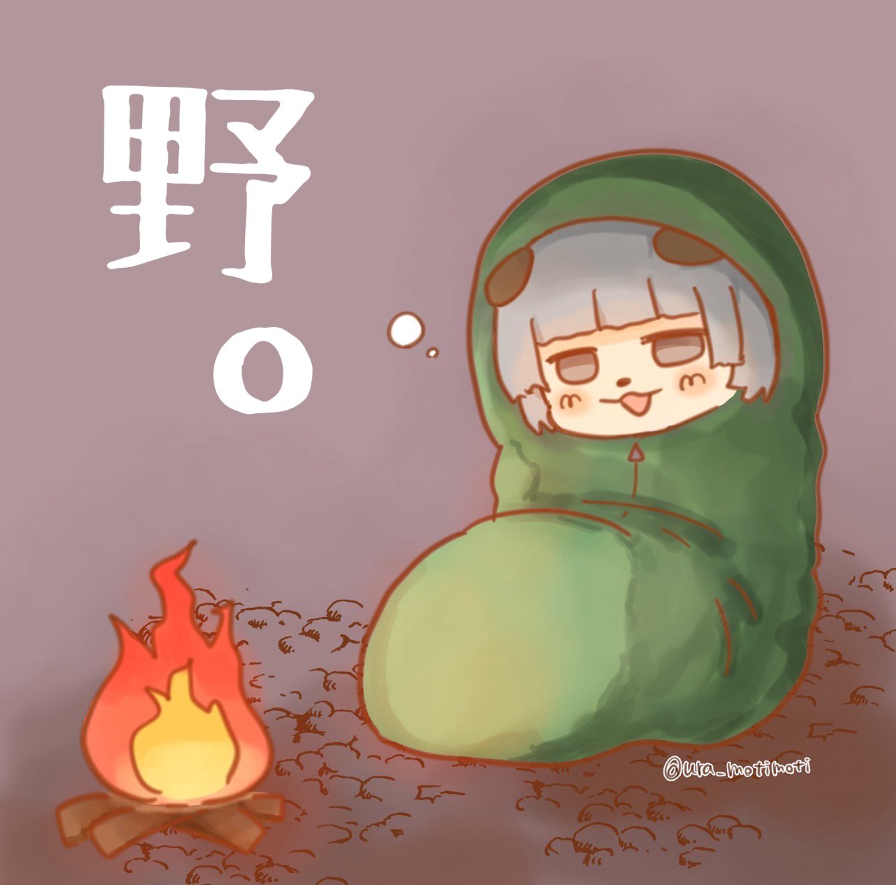 野営に挑戦して、暇すぎてまた焚き火🔥見そう。娘に描いてもろた😍 #ぽこあーと #ぽんぽこ #ぽこアート #ぽこピー