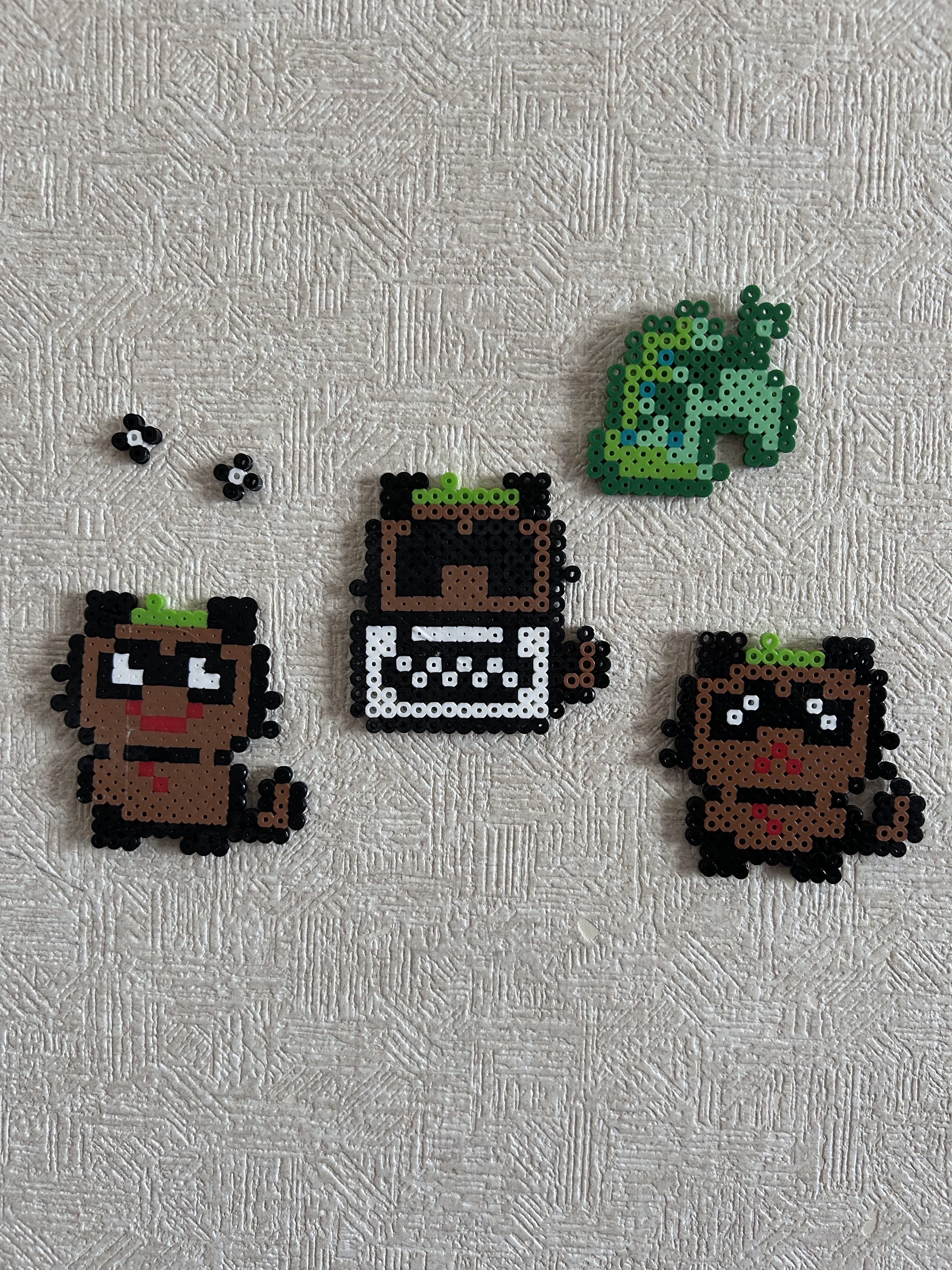 作:弟(小学2年生) たまごっちポップアップの写真見せたら勝手に真似して作っててすごすぎる アイロンビーズぽんぽこ可愛い #ぽこあーと