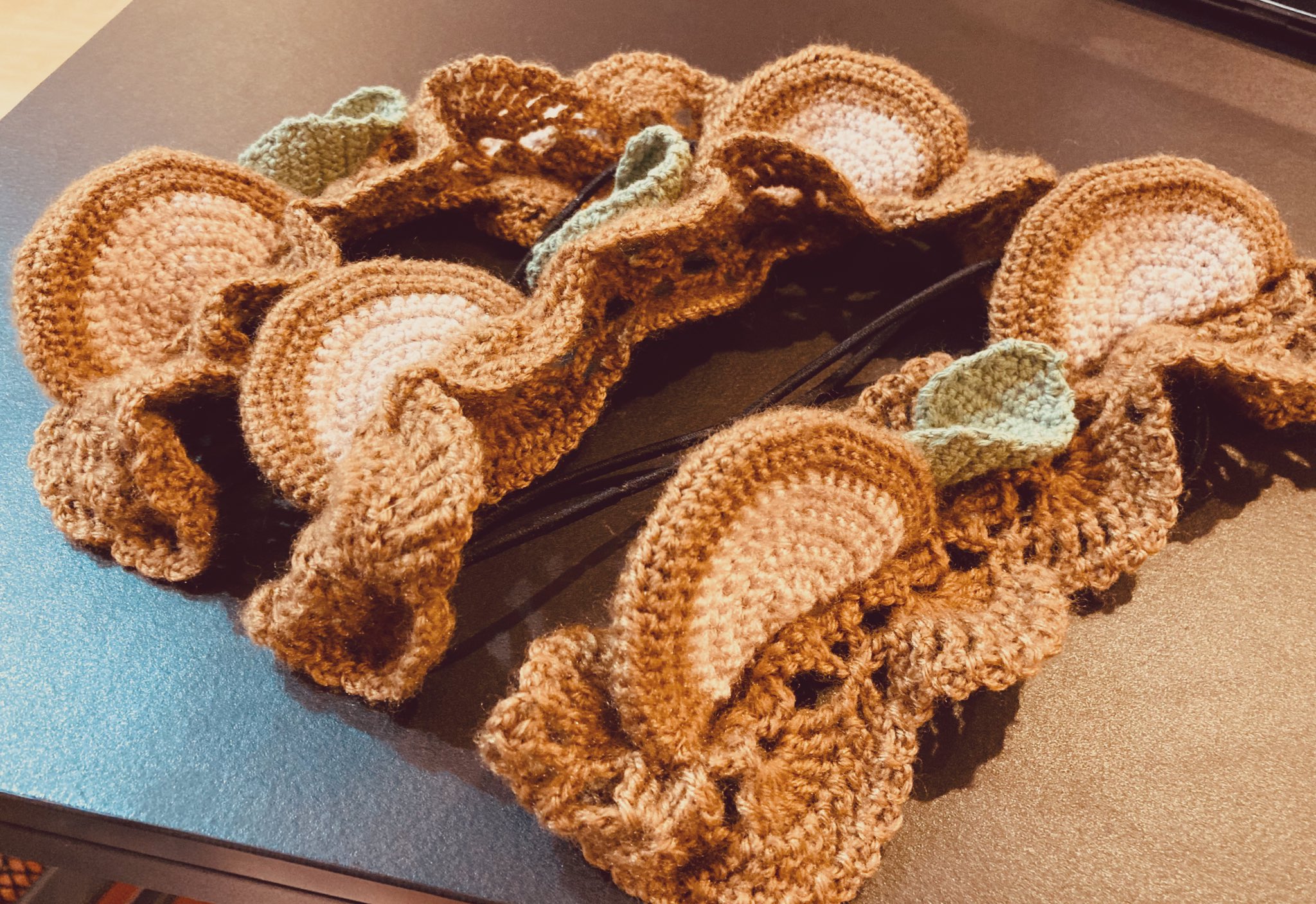 友人&友人の子供2人に編んだぽんぽこさんなりきりカチューム!とても喜んでもらえた〜! #ぽこあーと