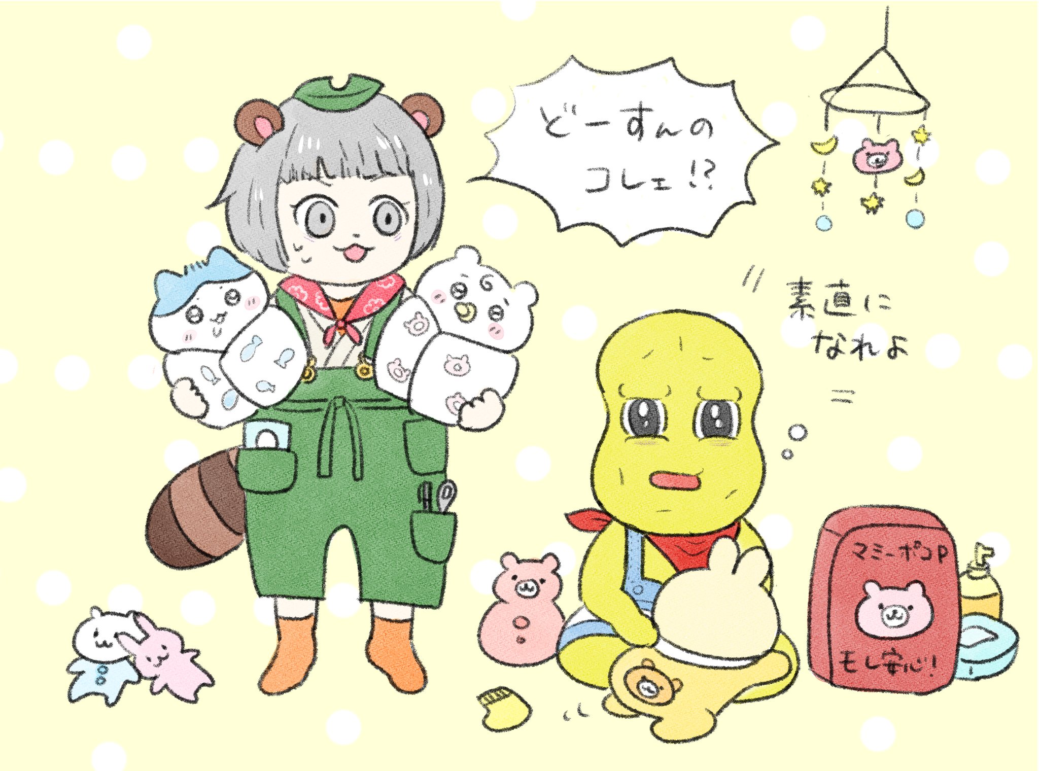 ストーリーにないベビー展開にざわざわしつつも、いざこういう状況になったらめちゃくちゃお世話してくれそう #ぽこあーと #ぽこピーのゆめうつつ