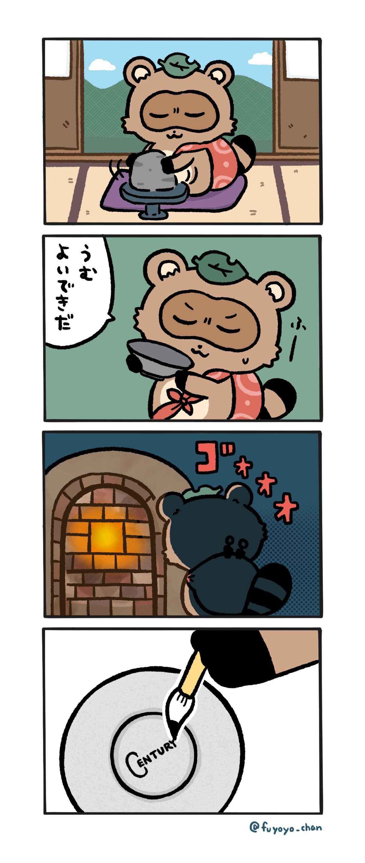 💯リバイバル投稿🍽️ 『職人』 5年前に描いたぽこピー4コマ漫画より! 「Century」はセリアで売っている食器に書かれているメーカー名です🍽️✨️ (2020/12月投稿より) #ぽこあーと