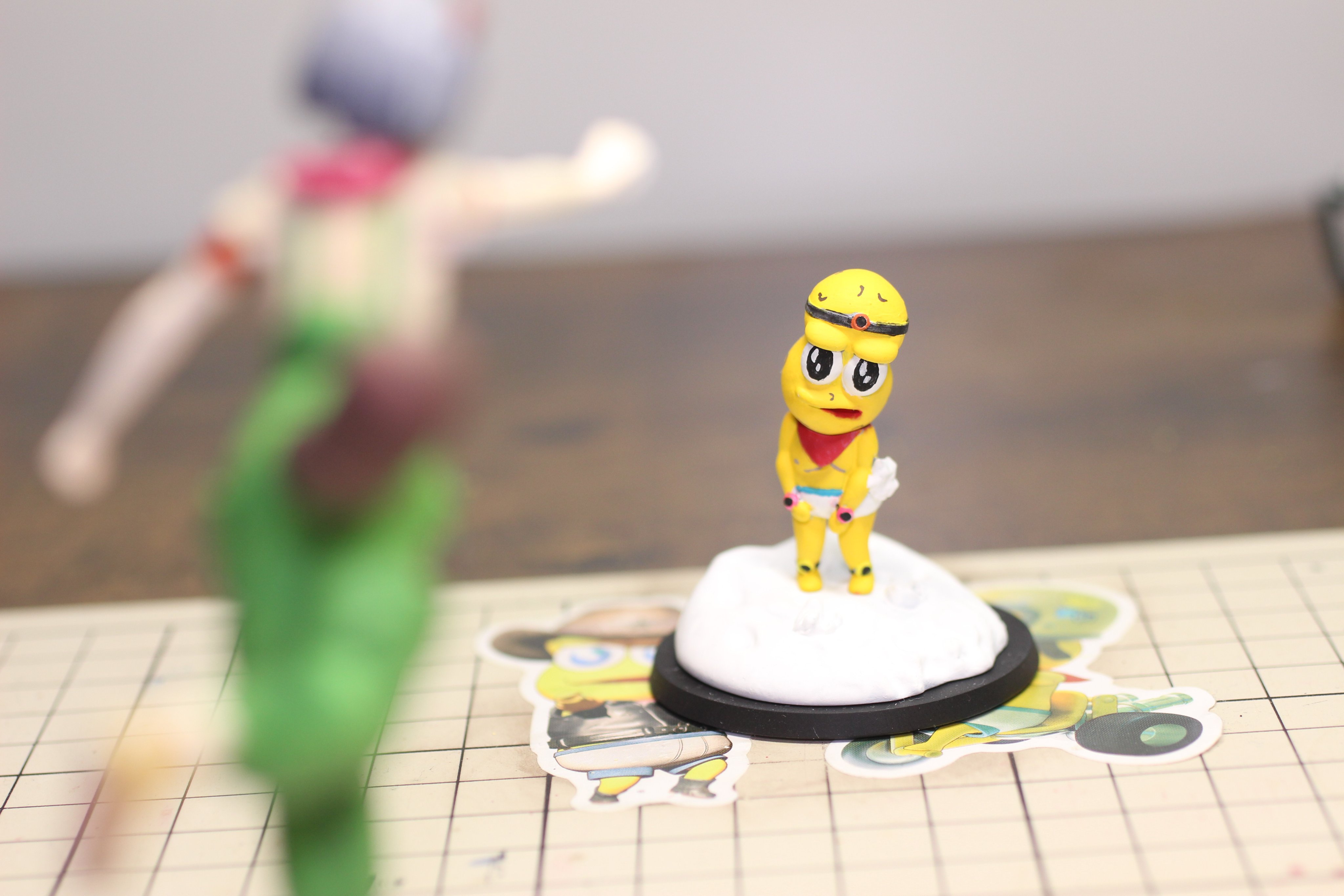 ぽこピーのミニチュア作りました!10cmくらい! 裸モコピの動画イメージです! 塗装は一番下の土台以外、アクリルガッシュで筆塗りしました! #ぽこあーと #オシャレになりたいピーナッツくん