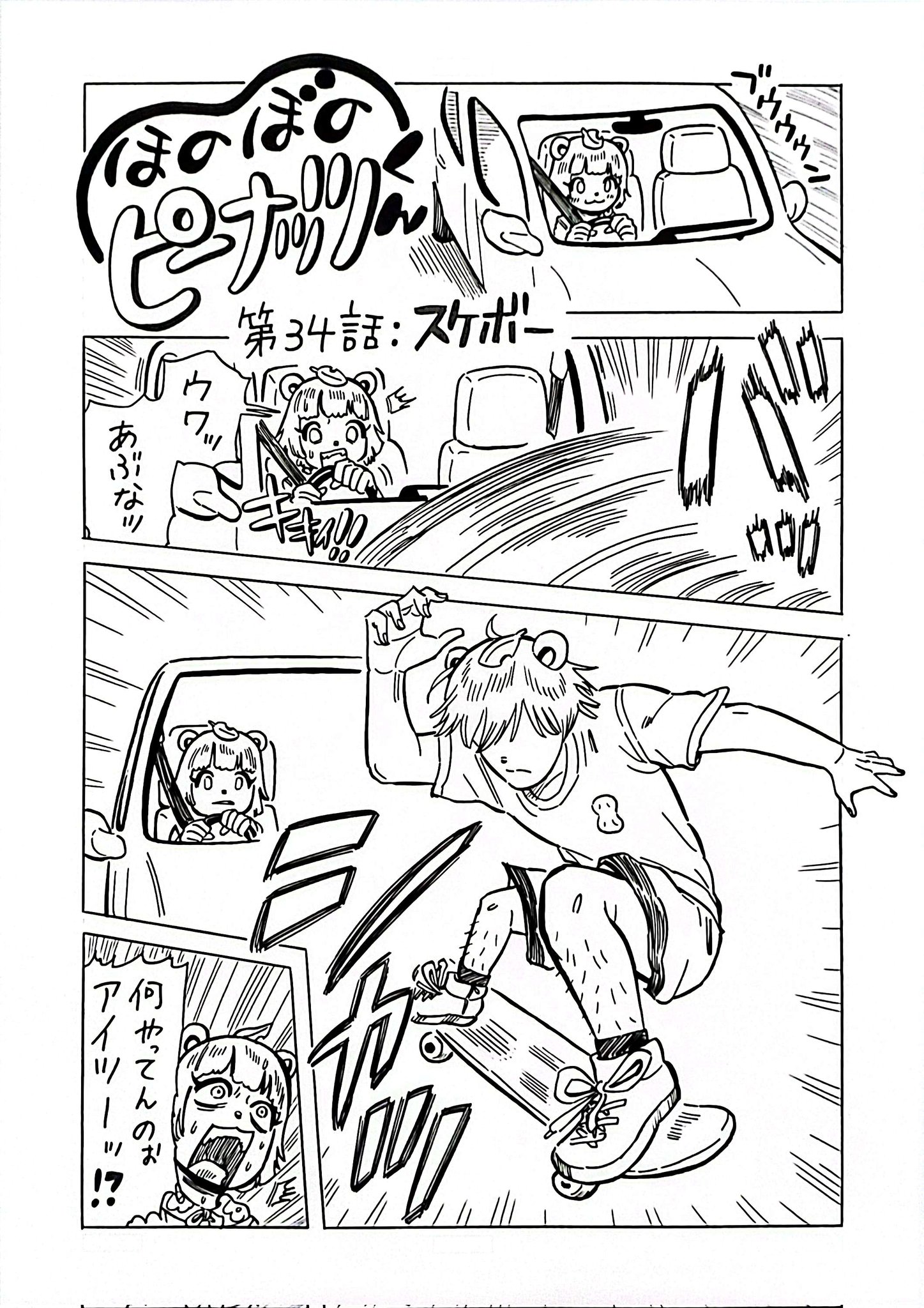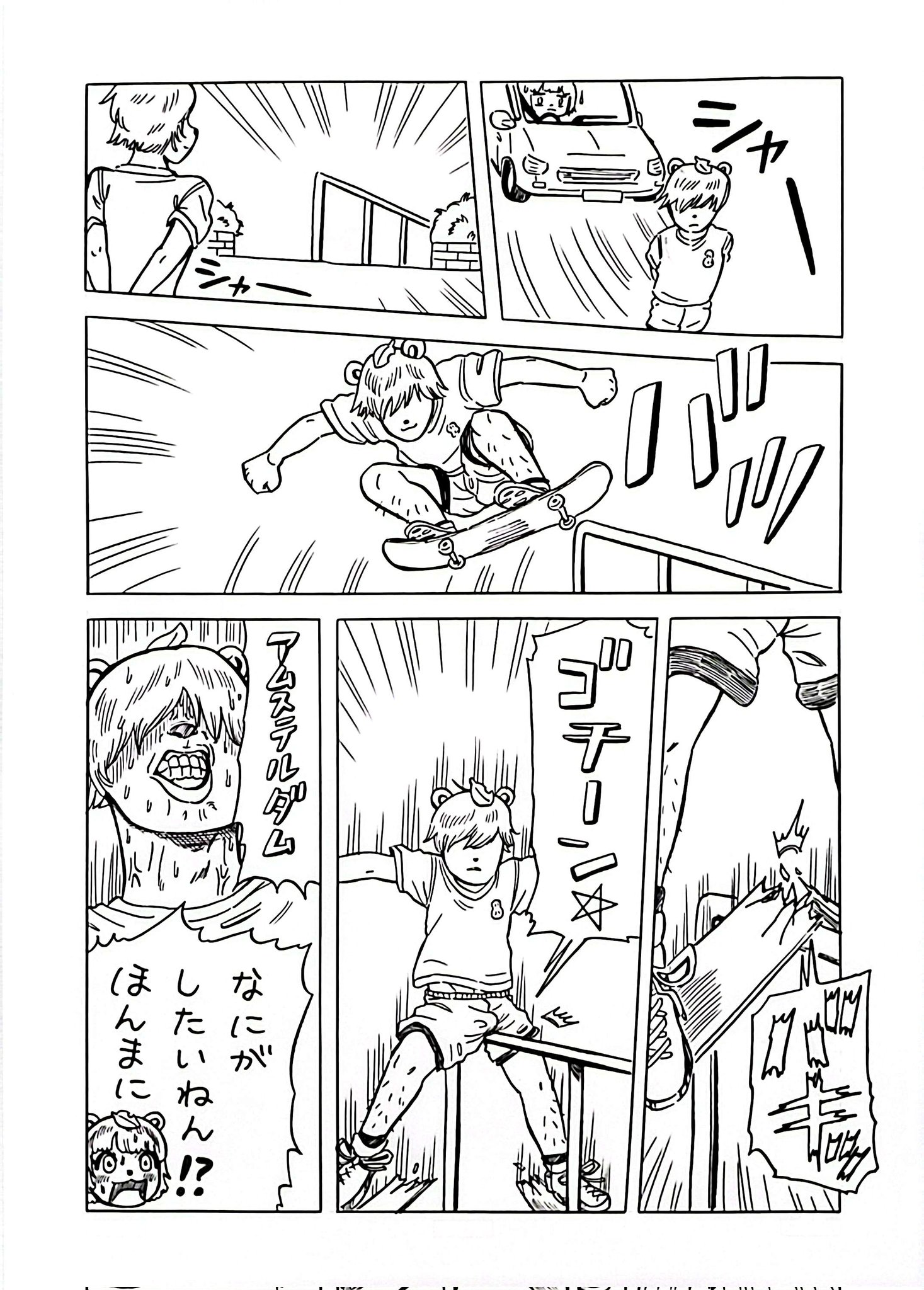 車で帰ってたらスケボーしている兄ぽこに遭遇したぽんぽこさん漫画 #オシャレになりたいピーナッツくん #ぽこあーと