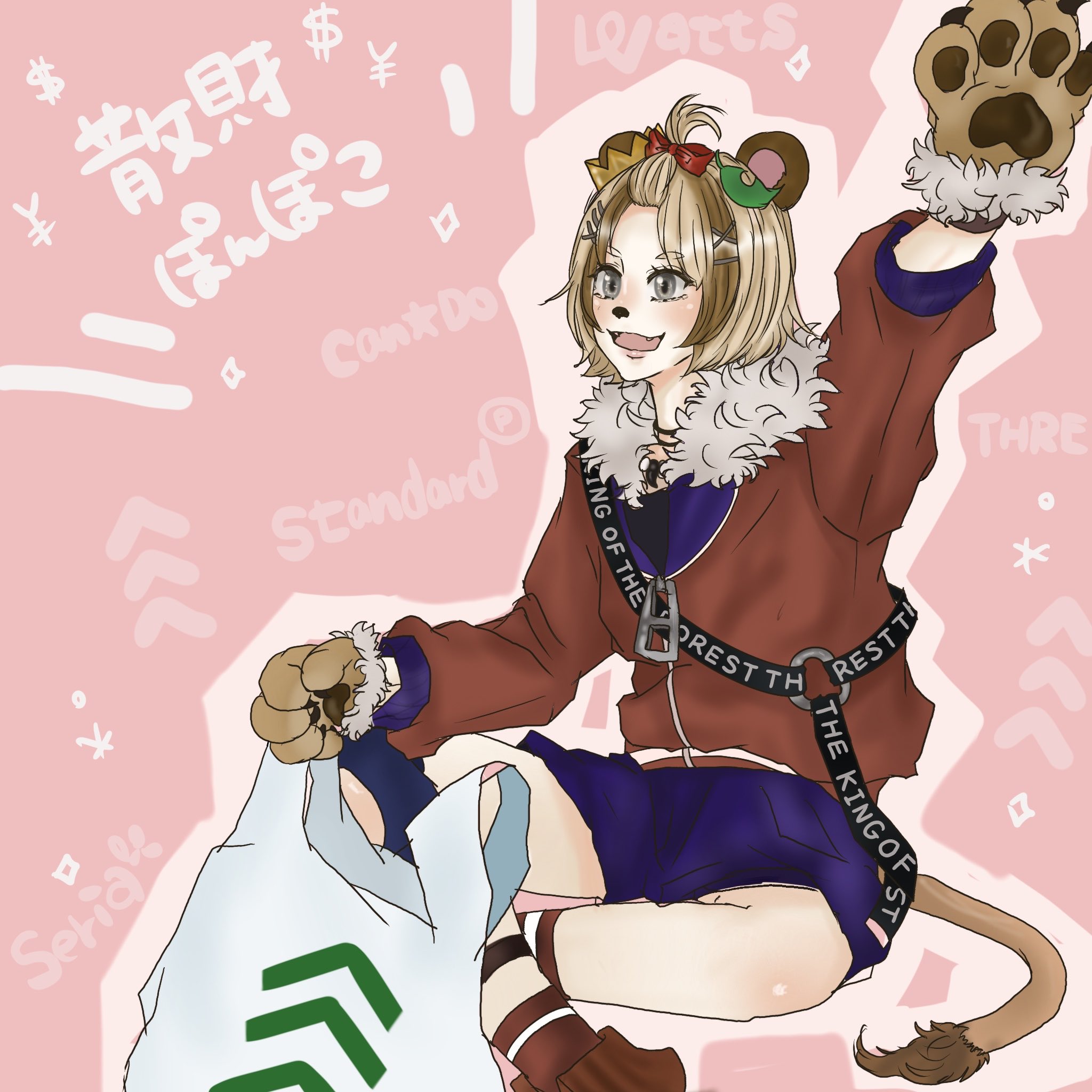 久しぶりにお絵描きした🎶 散財ぽんぽこさん〜🦁🍃💸💰 #ぽこあーと #ぽんぽこかしこい