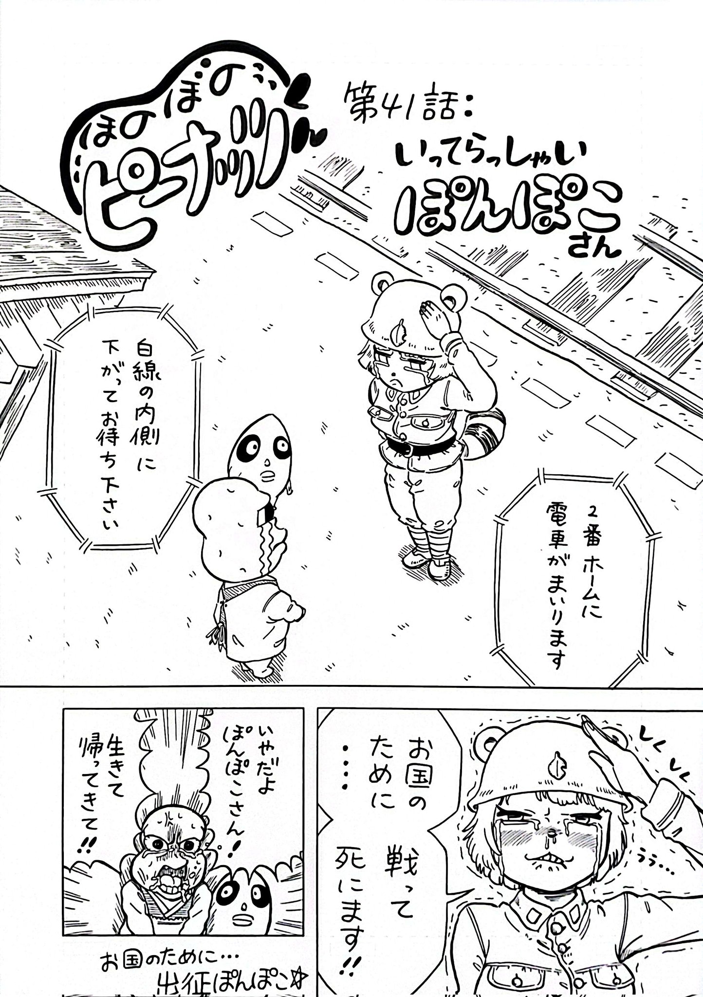 お国のために出征するぽんぽこさん漫画 #オシャレになりたいピーナッツくん #ぽこあーと