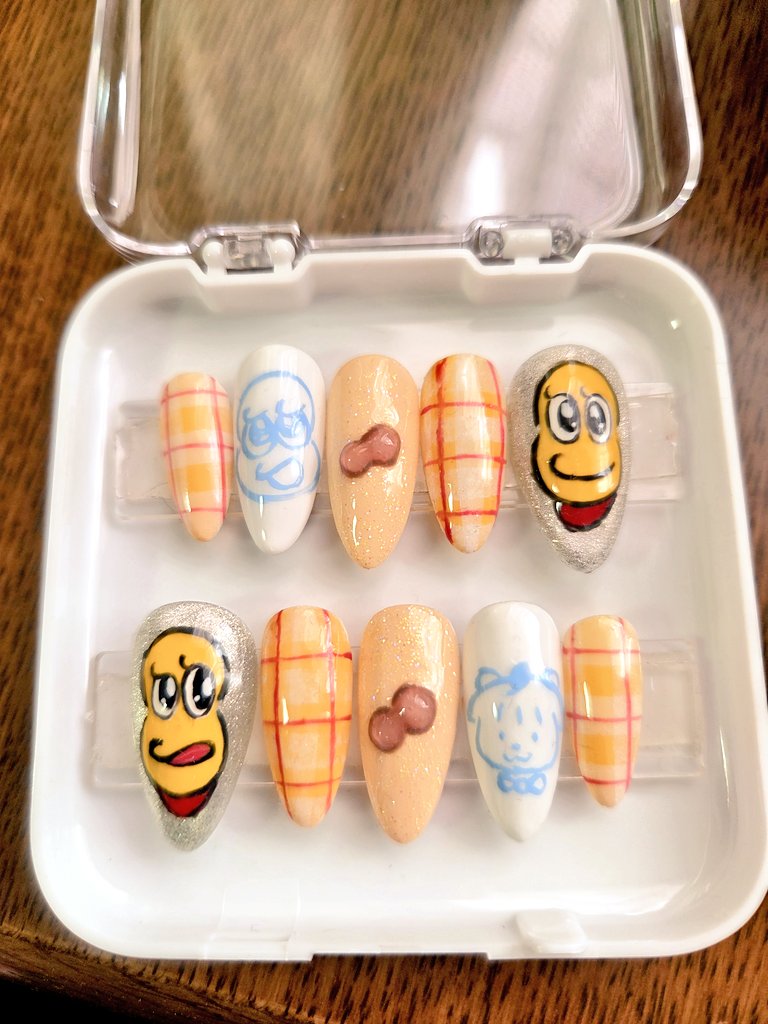 PQライブのために!!作った!!!承認欲求満たさせて!!!たぬきのふぐりみたいなのできちゃったオカシイナァ!!久々のネイルチップは課題が沢山でしたね…とりあえず! #PQライブ 頑張って!! 楽しみ! #ぽこあーと